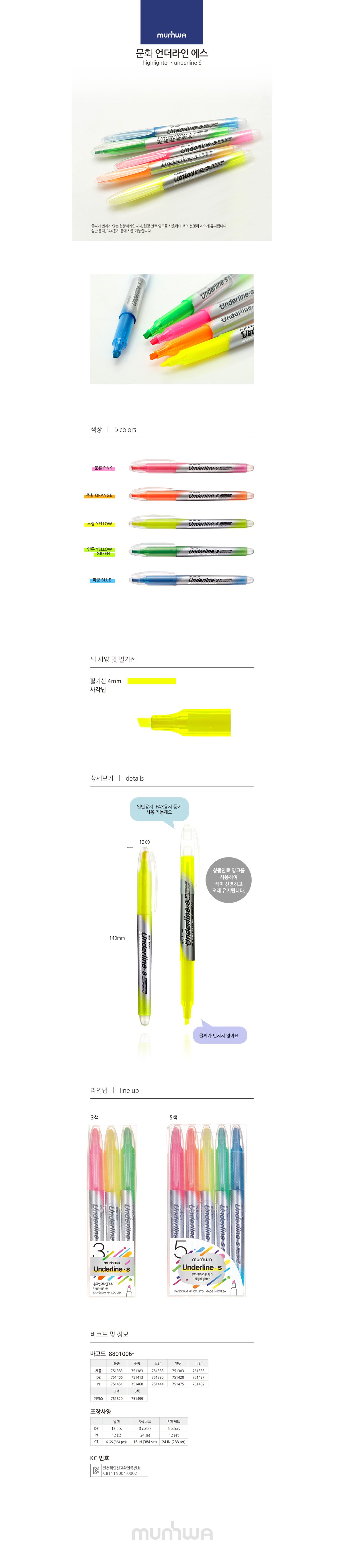 ■ 품명 및 모델명: 언더라인S 형광펜 3색 세트(문화)