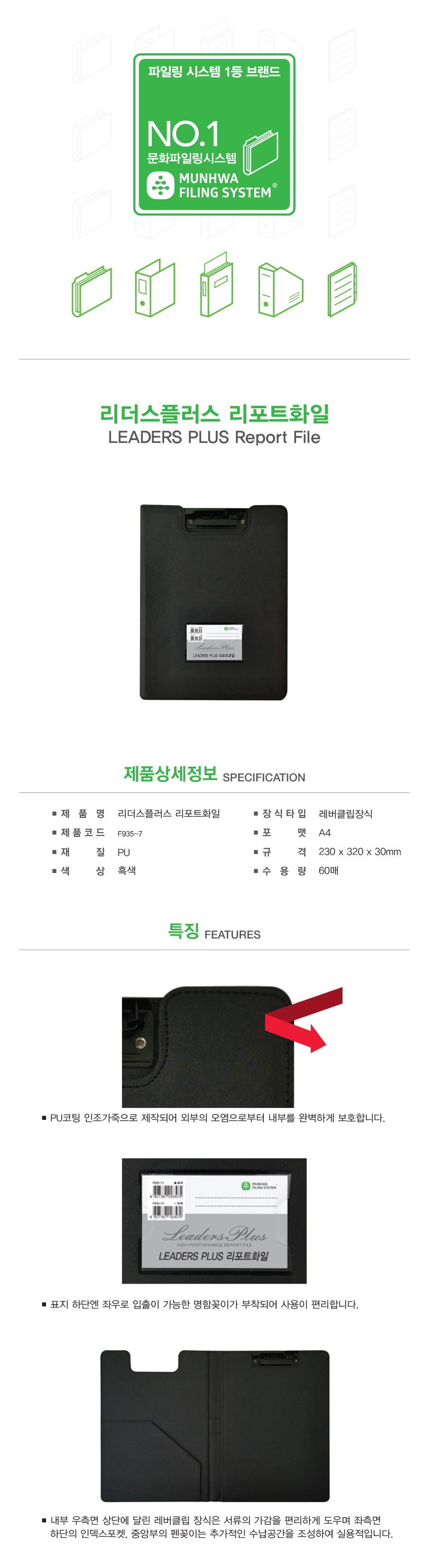 ■ 품명 및 모델명 : 리더스플러스 리포트화일(A4/F935-7/문화산업)